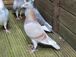 Tarzan GB (Bred by Mr Lee Barham) Sire Pure JVDB through lines of the Benjamin, through Timbarra Lofts. Dam is a result of Just A Kid (Soontjens) bloodlines of Mr & Mrs Lee Barham of Cromer, in combination with the Mealy (Germain Imbrecht) of Alan Barnfield, Timbarra JVDB and an Albert Van Der Flaes Janssen of Joe Jackson.